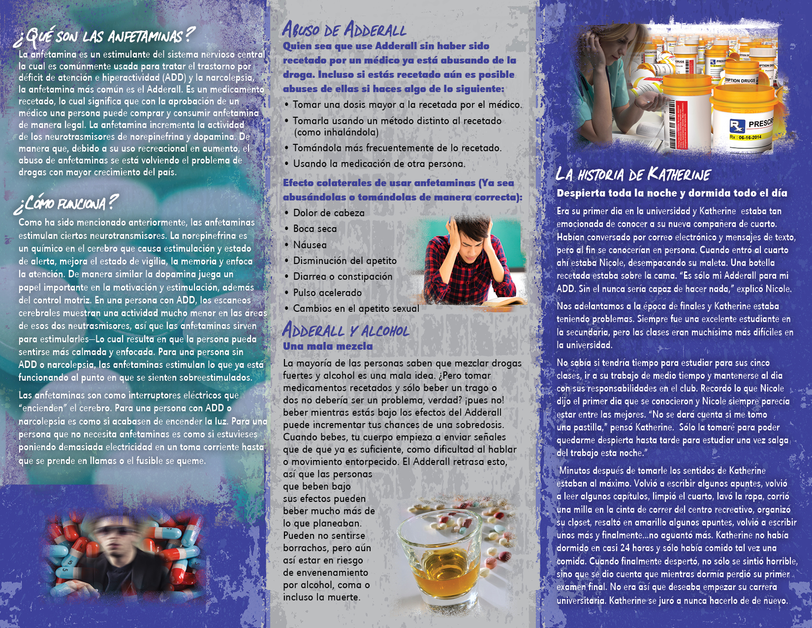 This pamphlet discusses the side effects of abusing these drugs, such as Adderall. It also discusses how mixing these drugs with other drugs or alcohol can make for a deadly combination.