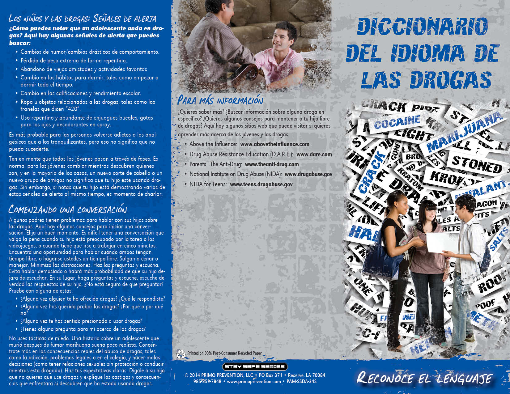 Learn how to identify different drugs and their street names. This pamphlet shows you the warning signs of drug abuse and offers tips on how to start a conversation with your child or student.