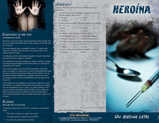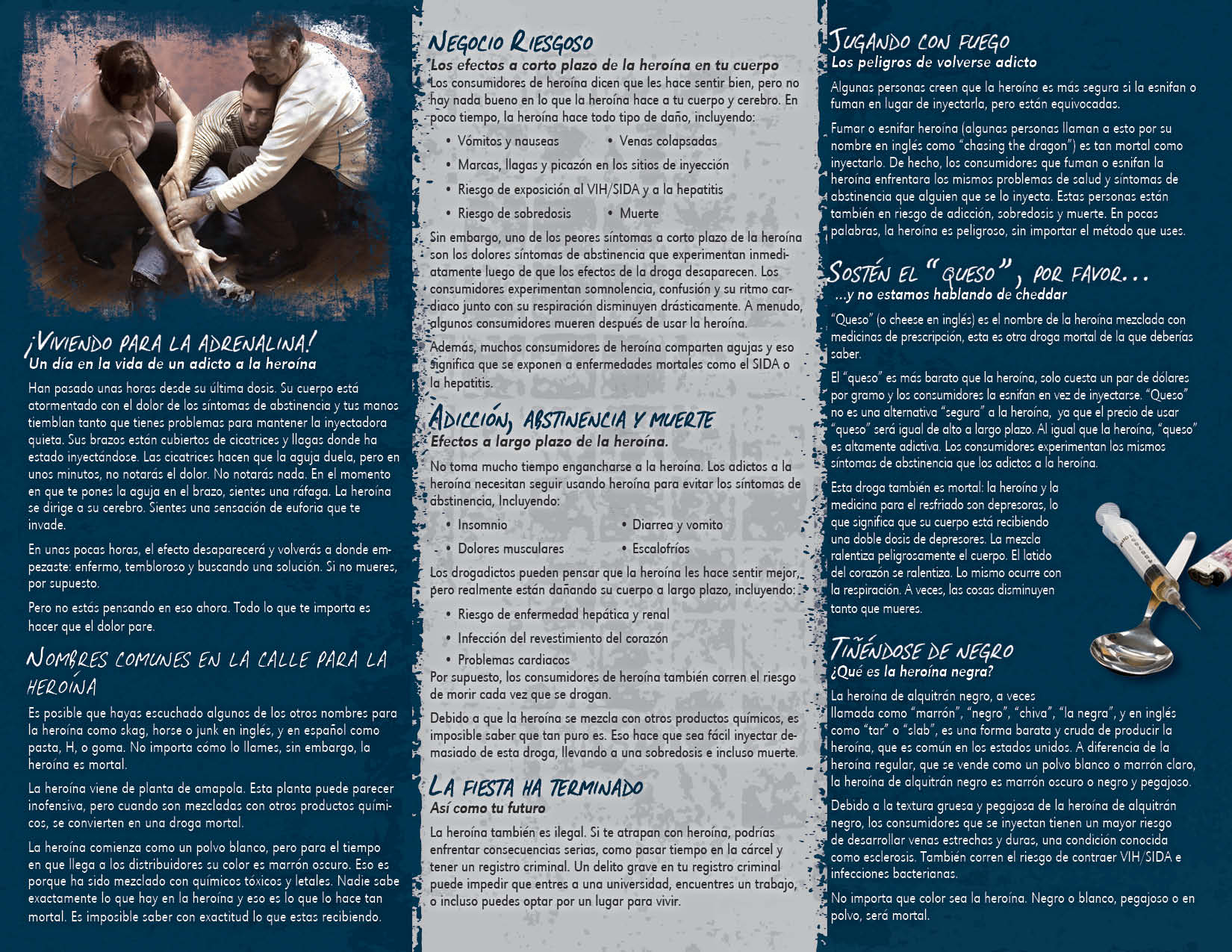 There are three major long term effects of heroin: addiction, withdrawal and death. This pamphlet explains the dangers of not only “shooting up”, but smoking, snorting and even putting it into liquid eye drops as well.