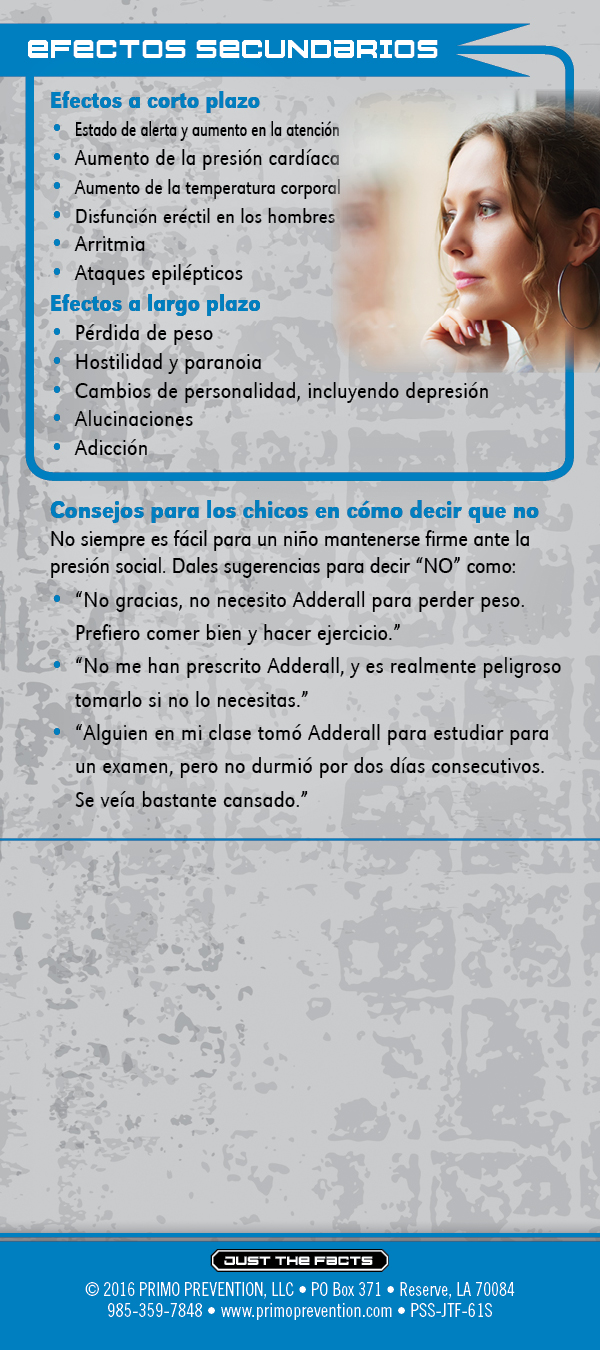 Did you know that Adderall can be very addictive? This rack card is a quick reference for anyone wanting to know the facts about Adderall, like: