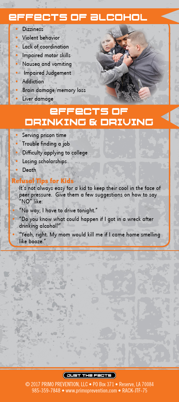 This rack card is a quick reference for anyone wanting to know the dangers of drinking alcohol and driving, like: