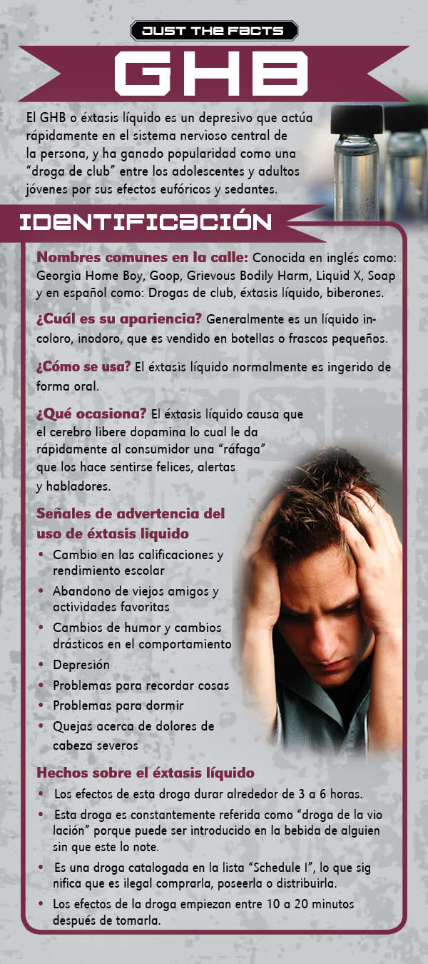 GHB is often referred to as a “date rape” drug because it can be easily slipped into someone’s drink without the user noticing. This rack card is a quick reference for anyone wanting to know the facts about the drug GHB, like: