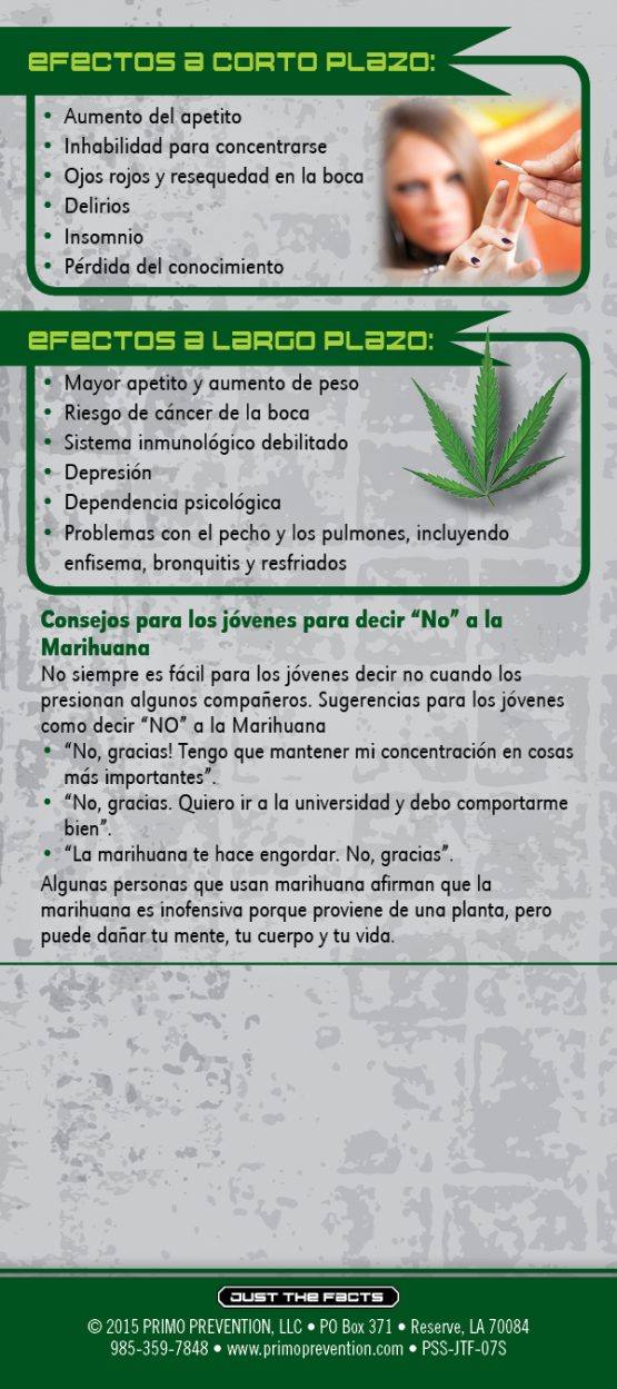 This rack card is a quick reference for anyone wanting to know the facts about Marijuana, like:
