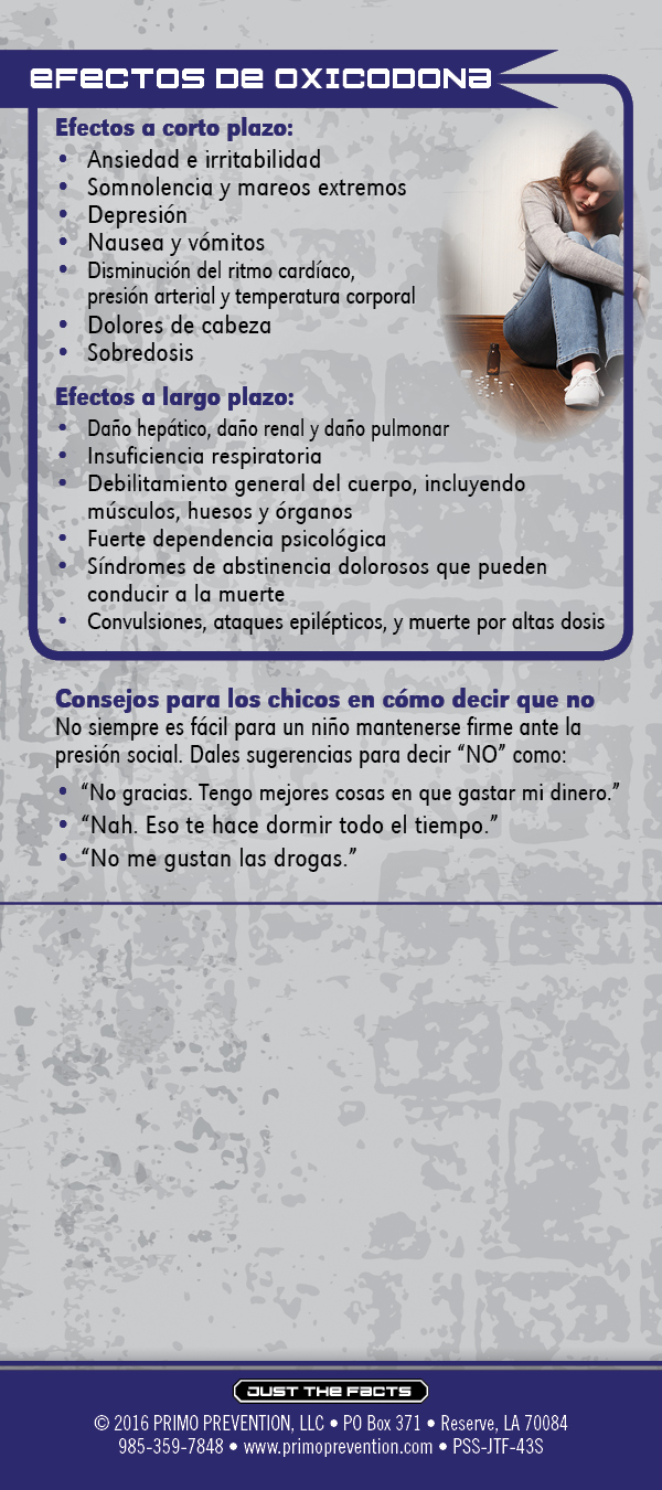 Did you know that Oxycontin is a Schedule II narcotic, the same classification as Cocaine? This rack card is a quick reference for anyone wanting to know the facts about Oxycontin, like: