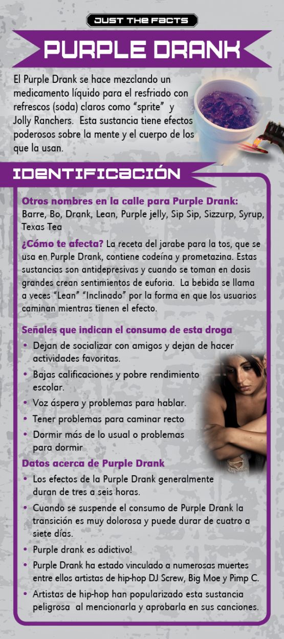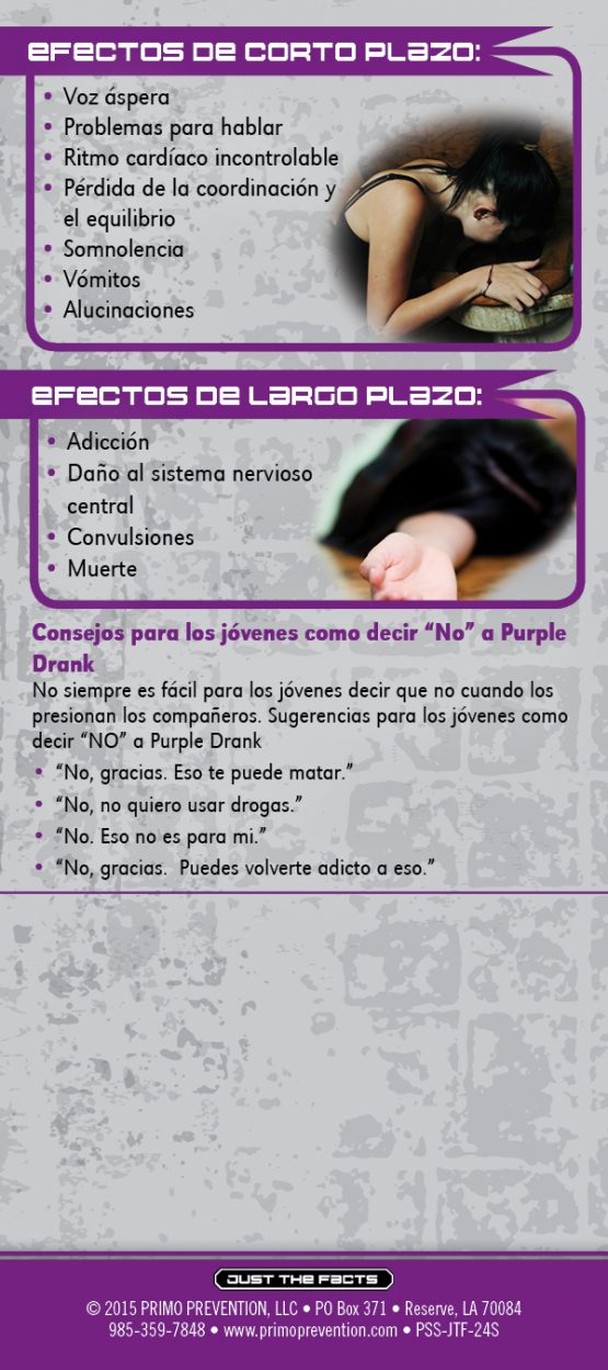 Purple Drank has been linked to numerous deaths including hip hop artists DJ Screw, Big Moe and Pimp C. This rack card is a quick reference for anyone wanting to know the facts about the drug Purple Drank, like: