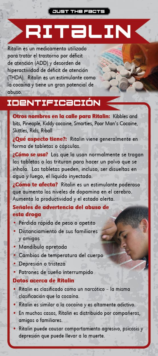 Ritalin is as highly addictive as cocaine. This rack card is a quick reference for anyone wanting to know the facts about Ritalin, like: