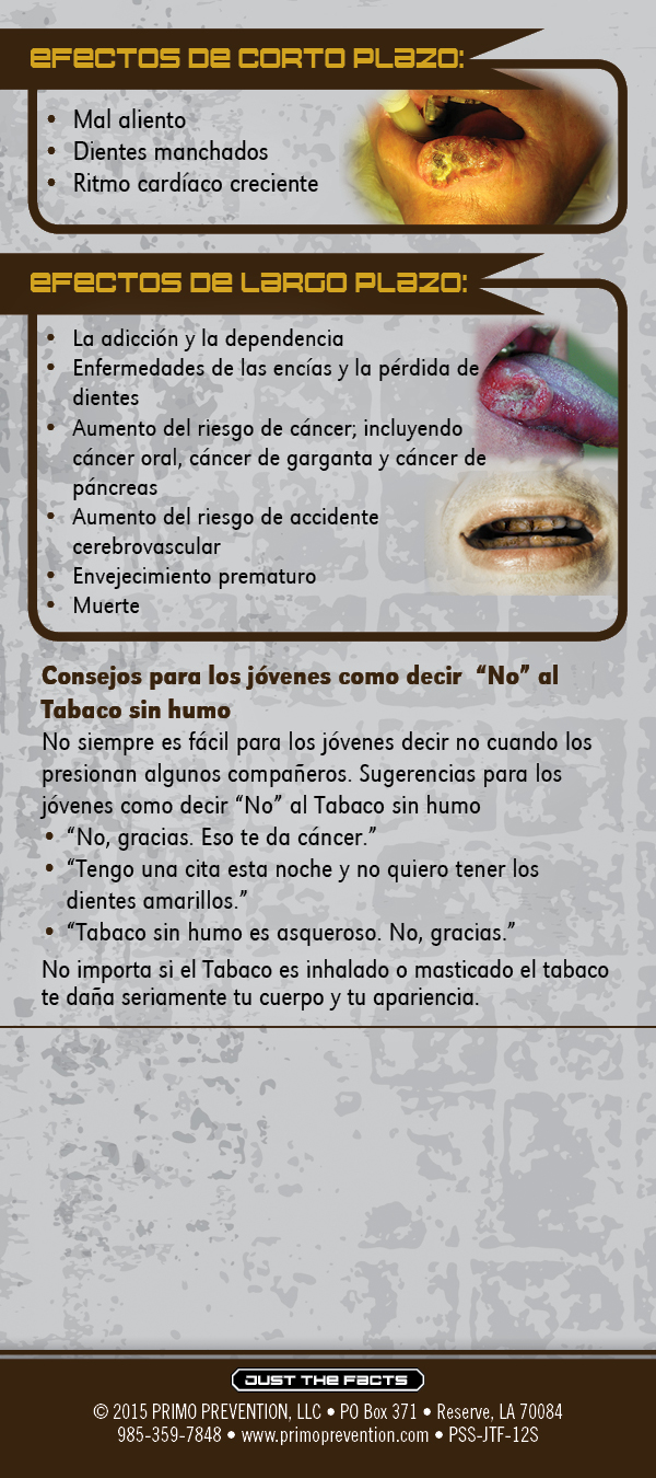 This rack card is a quick reference for anyone wanting to know the facts about smokeless tobacco, like:
