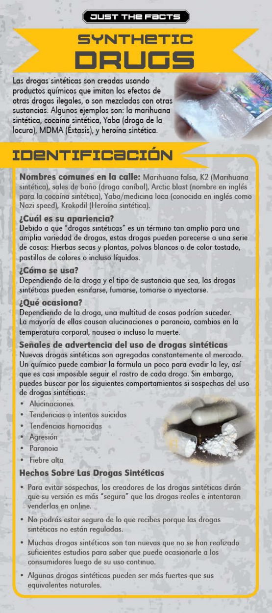 This rack card is a quick reference for anyone wanting to know the facts about Synthetic Drugs, like:
