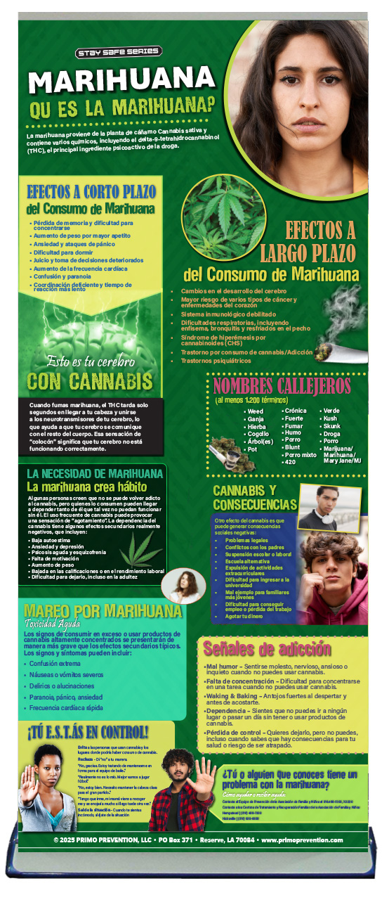 *SPANISH VERSION* Portable, eye-catching, and professional. Use this colorful retractable banner to help educate others on the dangers of Marijuana.