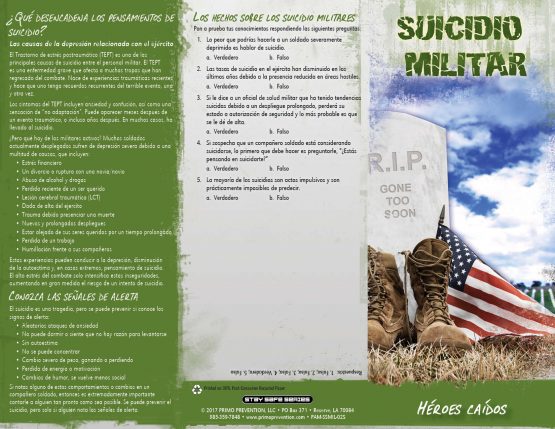 This pamphlet discusses the causes, PTSD, warning signs, prevention, facts and finding support.