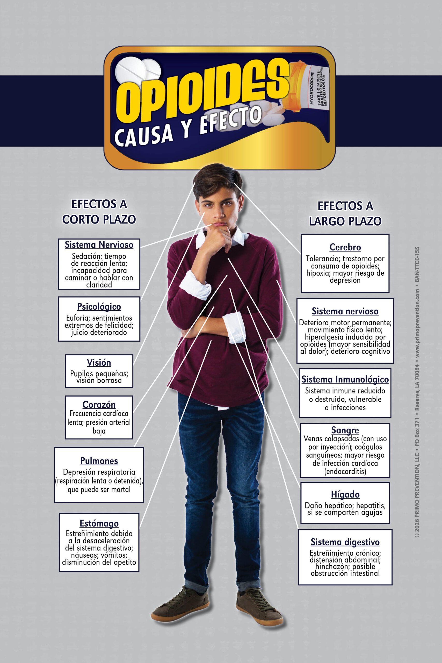 *SPANISH VERSION* Mini Table Top Retractable Banner. Portable, eye-catching, and professional. Use this retractable banner to help educate others on the effects that Opioids have on the body & mind.