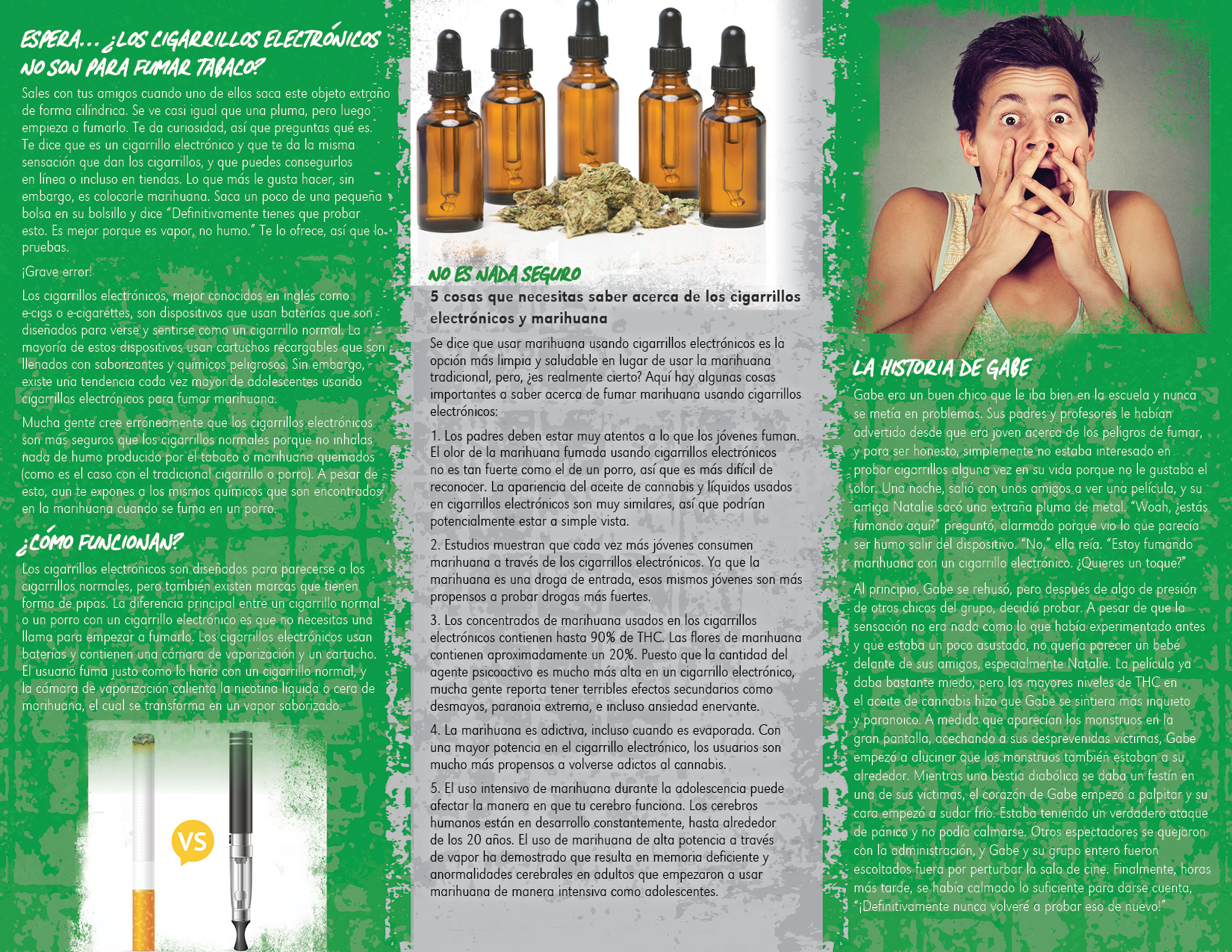 This pamphlet informs readers that vaping marijuana is just as bad as smoking the real stuff, with some extra negative side effects.