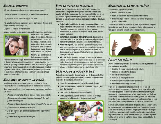 How hard is it to start a conversation with kids and teens about the dangers of drugs? It’s not as hard as you think, if you are able to involve them in a discussion, rather than lecturing them. This pamphlet offers tips to parents, counselors, teachers and anyone who works with kids. Topics discussed are: why talking about drugs matters, discussing rather than lecturing, avoiding scare tactics, using the media, being honest, refusal skills, recognizing signs of kids on drugs, tips for do’s and don’ts.