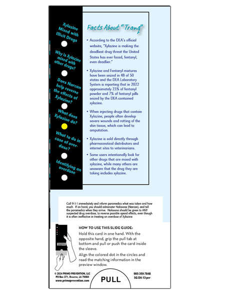A sliding encyclopedia of information, this pocket slider is filled with information regarding the dangers of Xylazine.