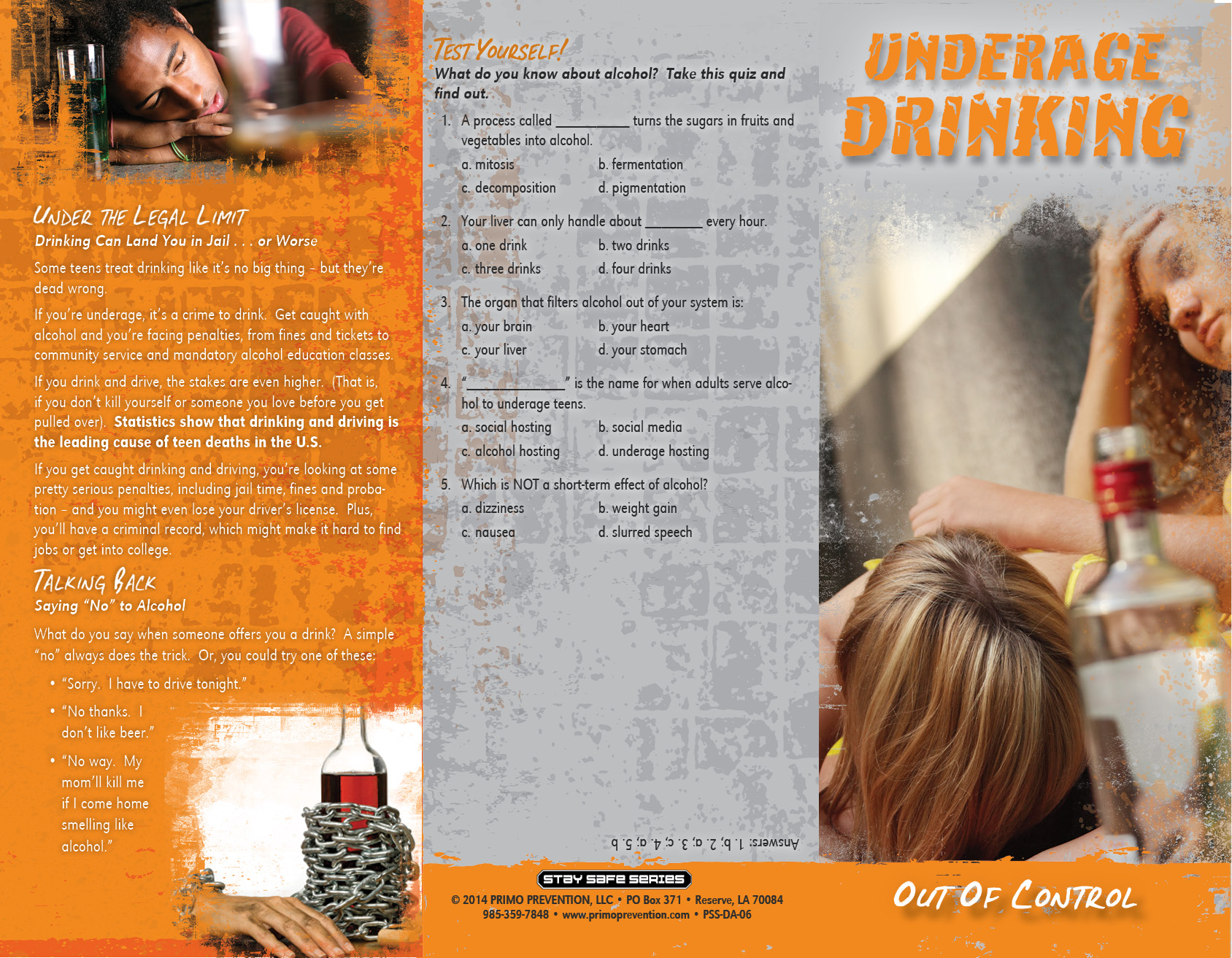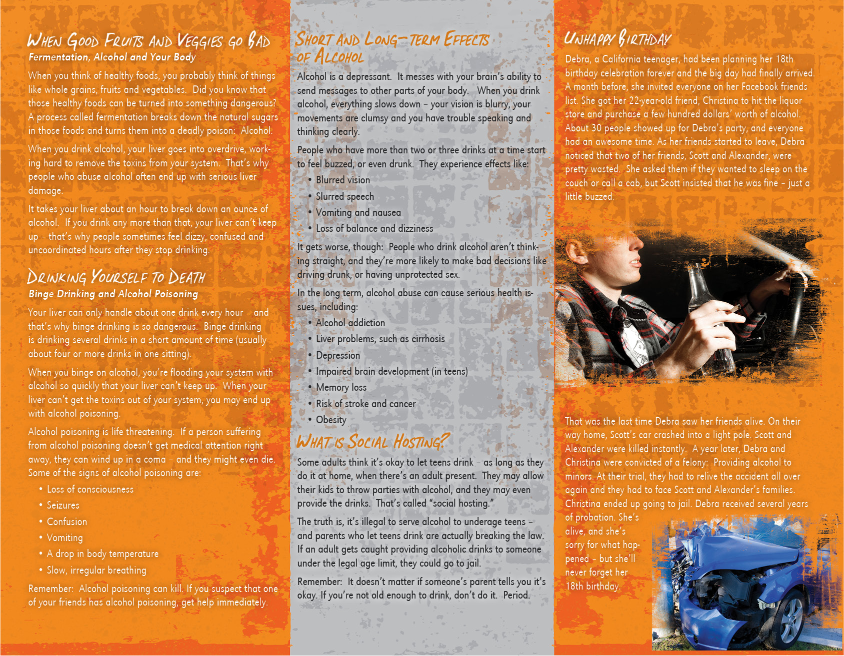 Underage drinking, social hosting, binge drinking and drinking & driving are all discussed.