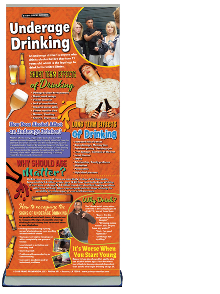 Portable, eye-catching, and professional. Use this colorful retractable banner to help educate others on the effects that Alcohol has on the body & Mind.