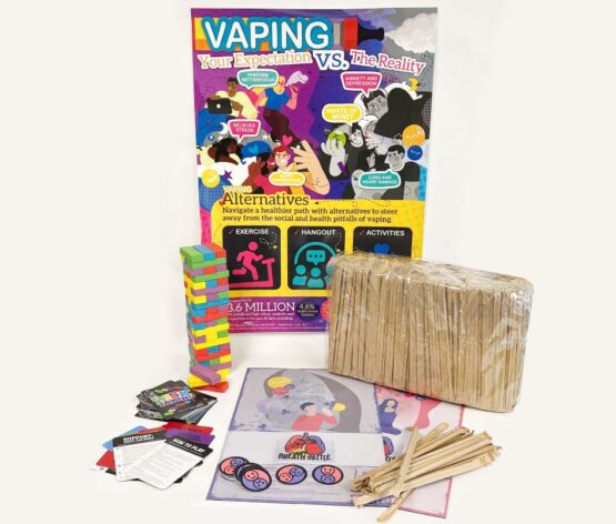 Help raise awareness about the health risks of vaping with this engaging and memorable educational resource. Ideal for school classrooms and community presentations, the Vaping Dangers – Program Kit features interactive activities and tools to spark meaningful conversations about vaping’s dangers while promoting healthier choices.