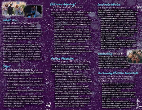 Learn about Compulsive Technology Use, the effects of videos games on your life, dangers of online gambling, warning signs of addiction and how to break free from social media addiction.