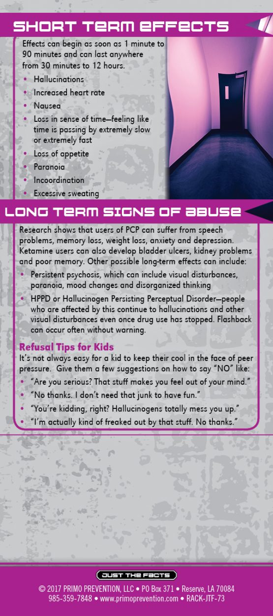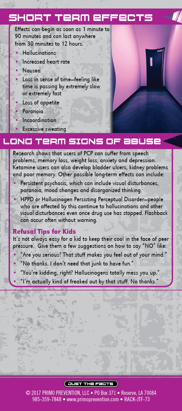 This rack card is a quick reference for anyone wanting to know the facts about Hallucinogens, like: