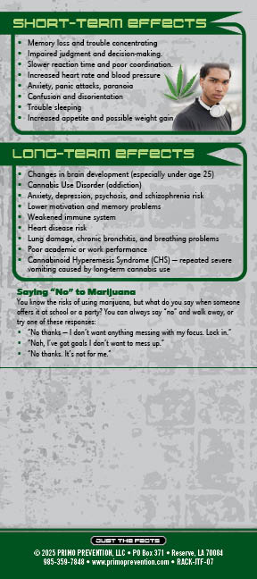 This rack card is a quick reference for anyone wanting to know the facts about Marijuana, like: