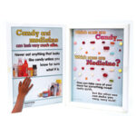 Created to look like a medicine cabinet, this 3-D display opens to reveal permanently sealed, look-alike medicine and candy facsimiles.