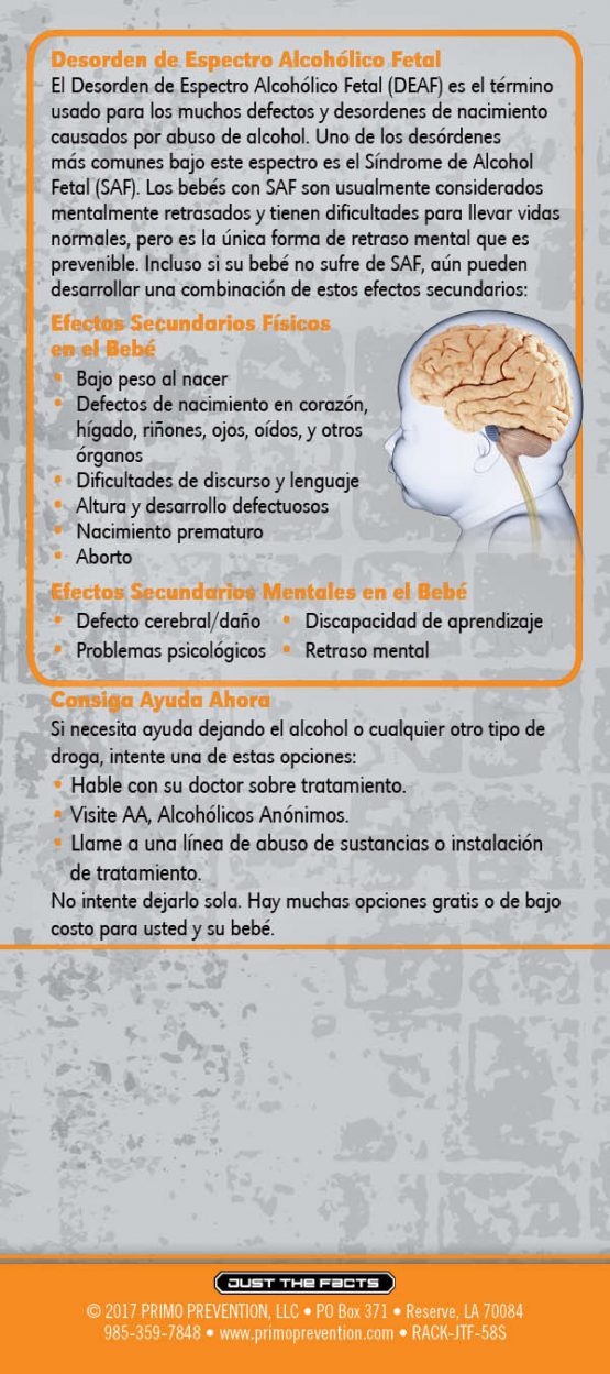 This rack card is a quick reference for anyone wanting to know the facts about drinking alcohol while pregnant, like: