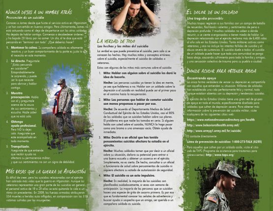 This pamphlet discusses the causes, PTSD, warning signs, prevention, facts and finding support.